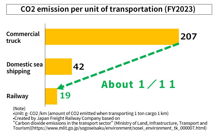 JR Freight is promoting a modal shift to rail by making use of the features of rail transport, such as large volume, punctuality, and environmental friendliness.