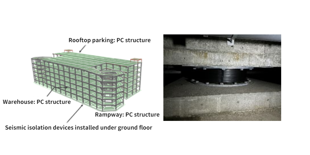 durability- earthquake resistance. - Seismic isolation devices made of laminated rubber are installed in the building‘s foundations. This reduces the vibration of the