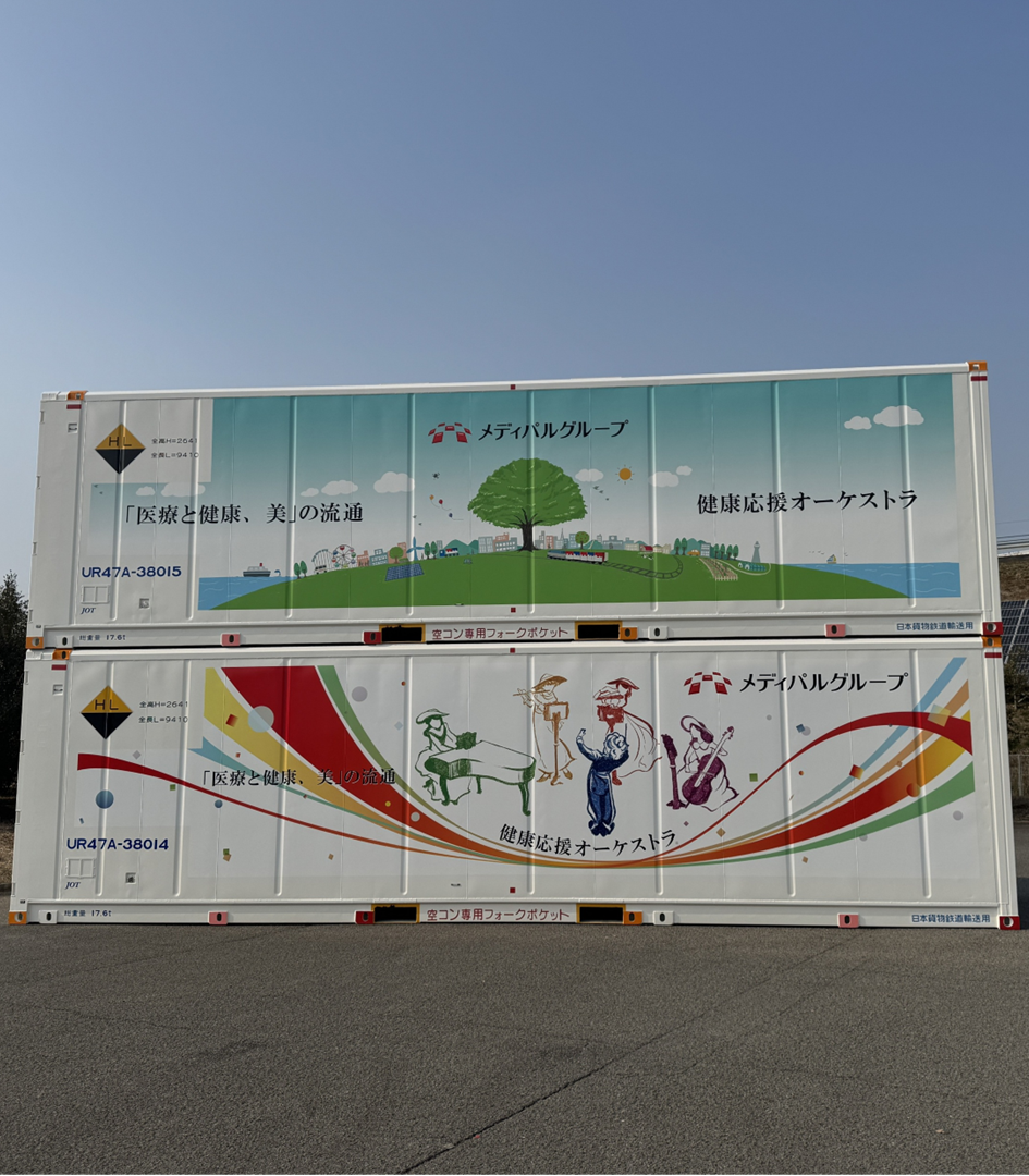 医薬品卸のメディセオは2025年4月より、埼玉~札幌間の幹線輸送で日本石油輸送の31ftスーパーURコンテナの運用を開始した。長距離区間をトラック・フェリー輸送から鉄道にシフトし、環境負荷軽減と2024年問題への対応を図る。従来首都圏~東北・関西で12ftタイプを利用しているが31ftは初めて。グループのスローガンなどをデザインした新コンテナは、保温・保冷性に優れ医薬品輸送に適するほか、荷物を奥まで積み込むジョロダーレールを装備し、作業効率も向上。週最大2往復運行で年間約310tの CO₂排出量削減を見込む。関西向けや異業種との共同輸送での同コンテナの活用も視野に入れている。